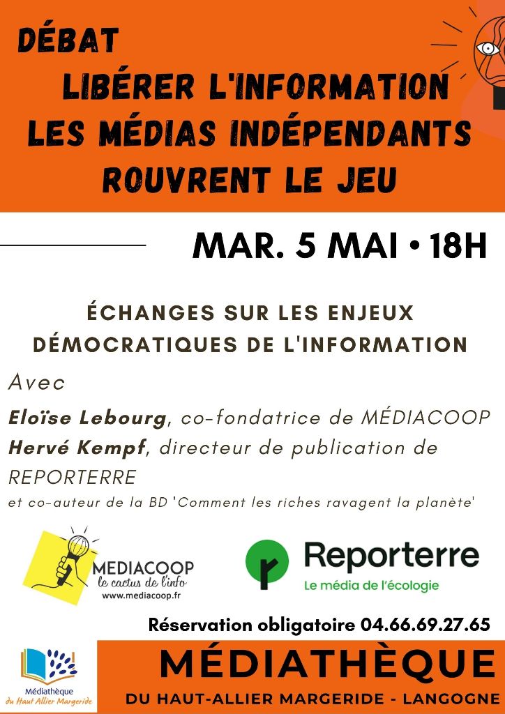 Echanges sur les enjeux démocratiques de l’information avec Eloïse Lebourg, co-fondatrice de MEDIACOOP et Hervé Kempf, directeur de publication de REPORTERRE et co-auteur de la BD « Comment les riches ravagent la planète ».