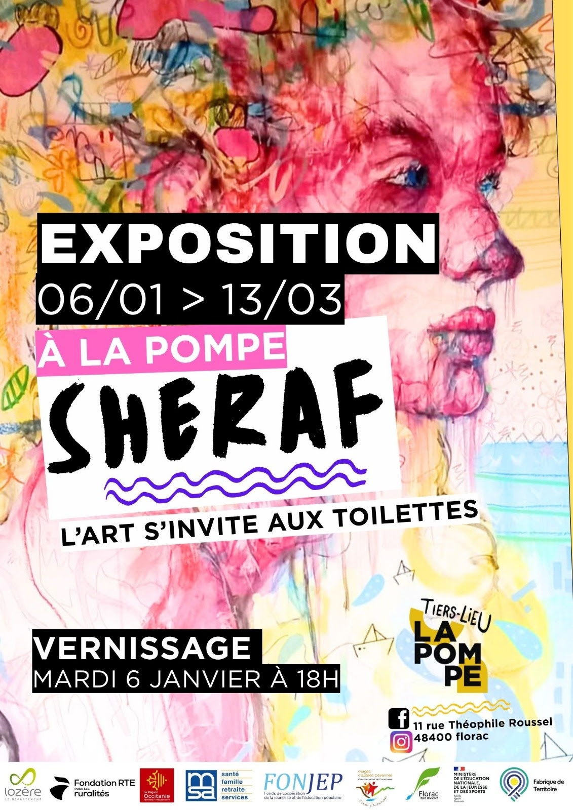 Du 6 janvier au 13 mars 2026 à La Pompe à Florac, venez découvrir l’exposition de Sheraf : l’art s’invite aux toilettes.