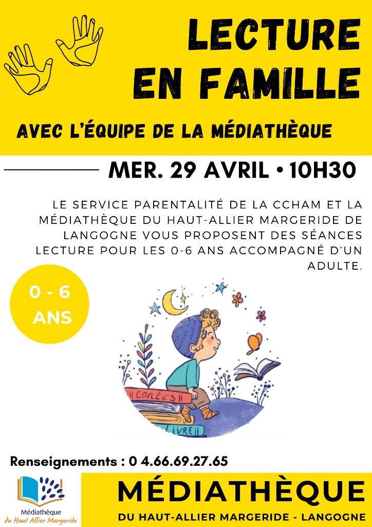 LANGOGNE | Lecture en famille avec l'équipe de la Médiathèque, pour les enfants de 0-6 ans accompagnés d'un adulte. |