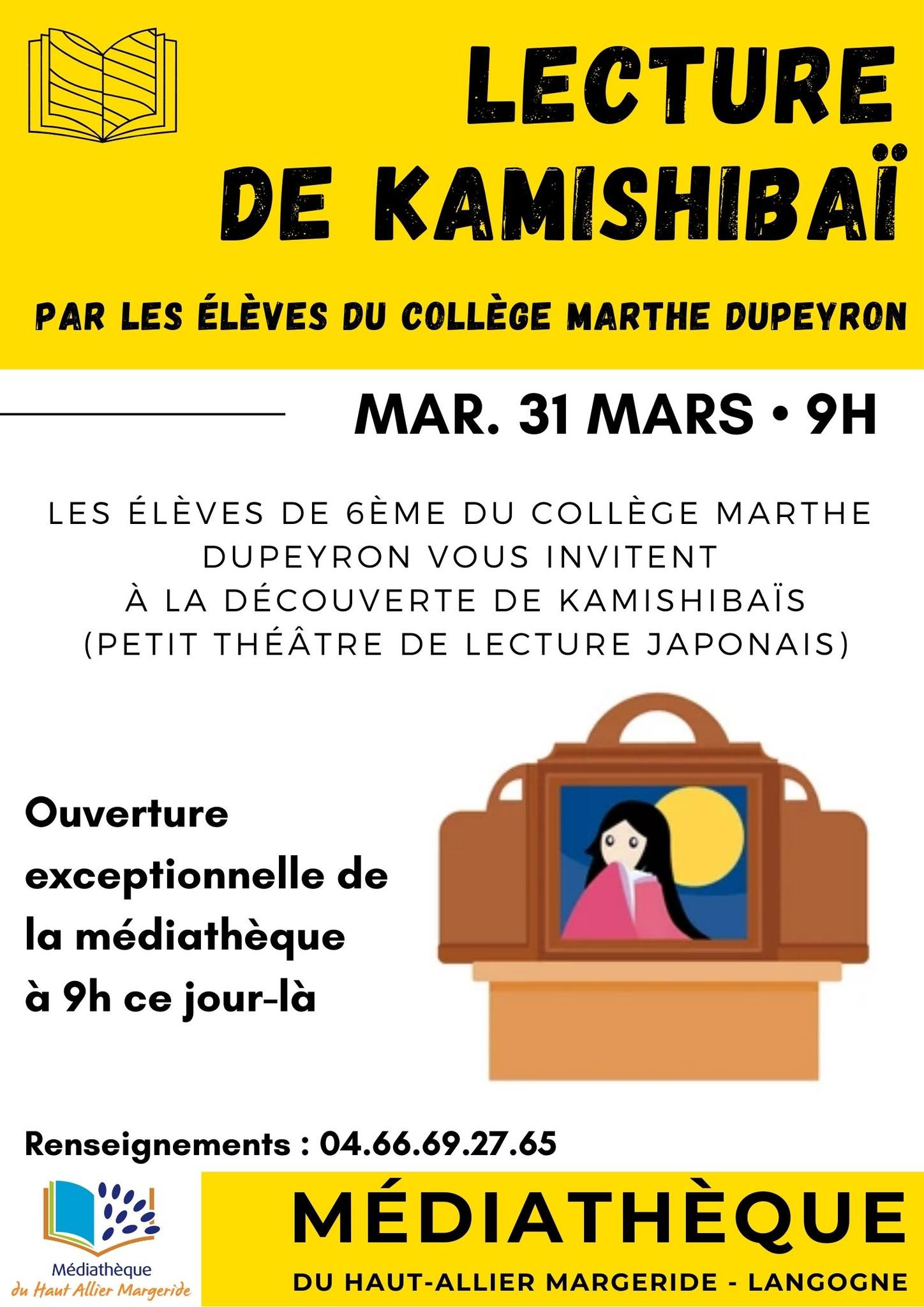 Les élèves de 6ème du Collège Marthe Dupeyron vous invitent à la découverte de Kamishibaïs.