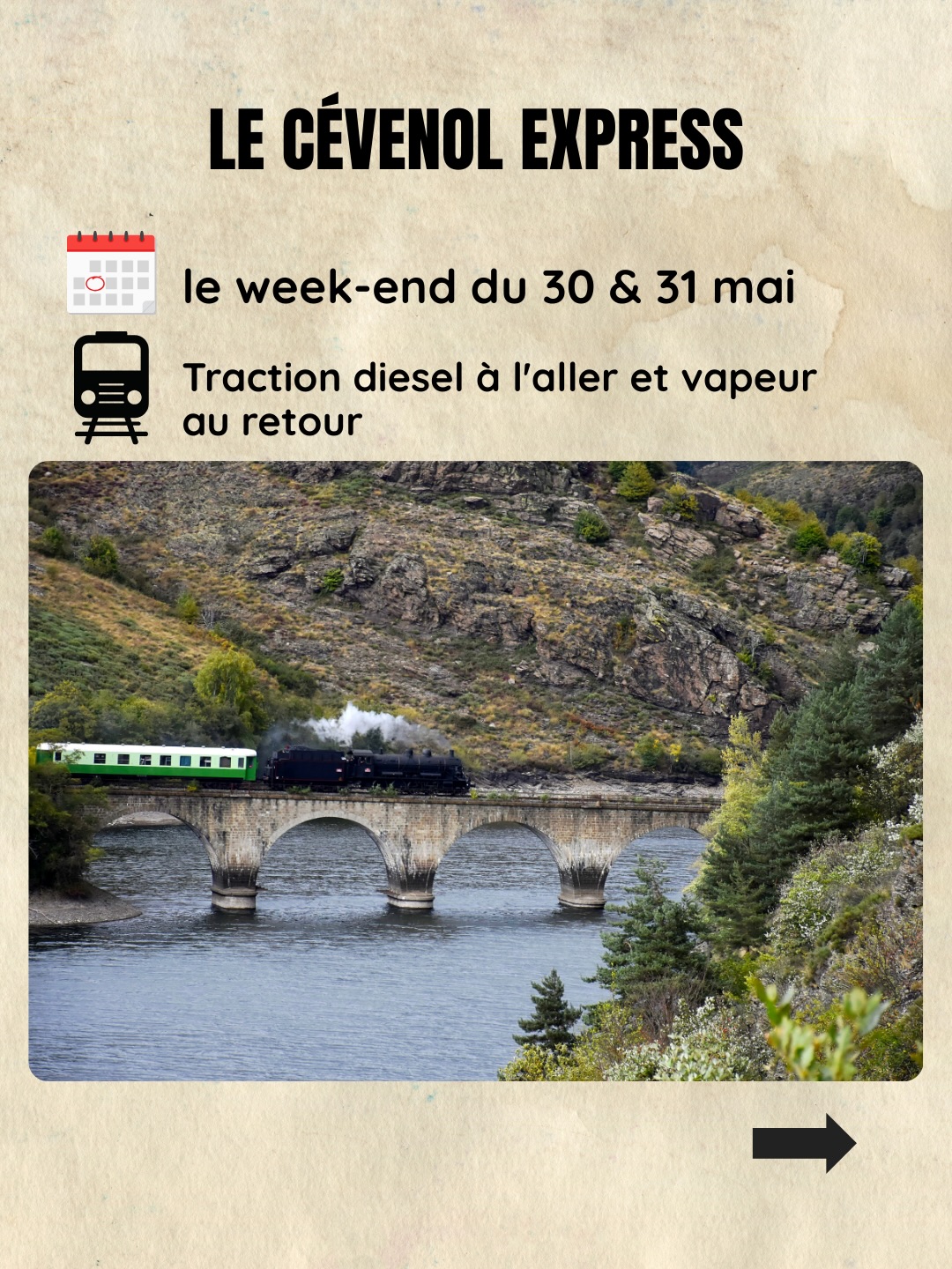 « Train Croisière » pour un périple sur deux jours qui vous fera découvrir la magie de la ligne des Cévennes de Clermont-Fd à Nîmes en passant par LANGOGNE.