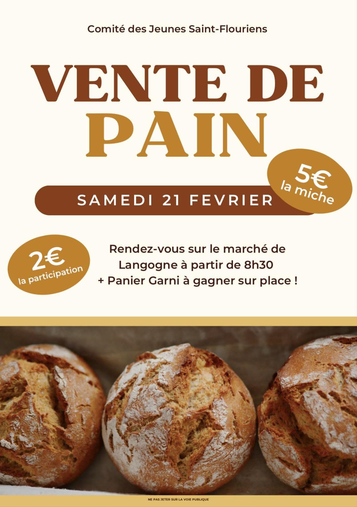 Le Comité des Jeunes Saint-Flouriens vous donne rendez-vous sur le marché de Langogne pour une vente de pains cuits au four du village de St Flour de Mercoire.