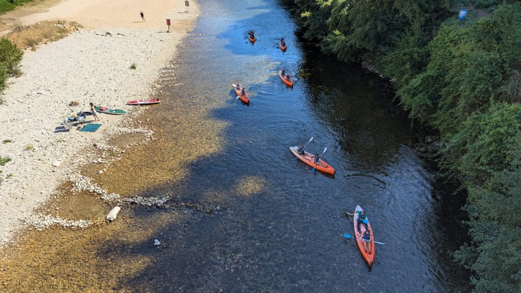 Vous avez encore de l’énergie à revendre après avoir lu ce paragraphe (et tous ceux qui le précèdent !) ? Ça tombe bien, car on n’en a pas fini ! Aux 4 coins de la Lozère, ce ne sont pas moins de 1000 voies d’escalade (et 6 via ferratas en libre accès) qui partent à l’assaut des falaises. Les plus motivés pourront par exemple se confronter au Vase de Sèvres, avec ses vertigineux dévers et ses vautours majestueux. Inoubliable ! Autre décor emblématique : le Cirque des Baumes et ses cotations du 4 au 8c+. Gloups ! Un décor qui se découvre aussi depuis la quiétude d’un canoë, l’activité phare des Gorges du Tarn ! Celle qui nous transporte au fil de villages tous plus beaux les uns que les autres, certains accessibles uniquement à pied (ou en canoë !), d’autres semi-troglodytes ou bordés de vignes en terrasses (eh oui, on produit du vin en Lozère !). Le tout sur 50 km de descente, tout juste troublés par le bien mal nommé Pas de Soucy :un énorme chaos que la légende attribue au combat qui opposa Énimie et le Drac… On n’oublie pas la pêche (saviez-vous à ce titre que Charpal est le plus grand lac de pêche no-kill de France ?), ni le kitesurf qui profite de conditions favorables de vent sur le Lac de Naussac, notre mer intérieure de 1000 hectares. Mais v’là le retour de l’hiver, les premiers flocons. Eh oui, en Lozère, on a des saisons bien marquées, et chacune amène avec elle son lot de belles surprises et de nouvelles activités ! Alors on chausse les skis, raquettes et autres luges (ça se chausse ??), et à nous les étendues immaculées du Mont-Lo ou de l’Aubrac. Le pied !