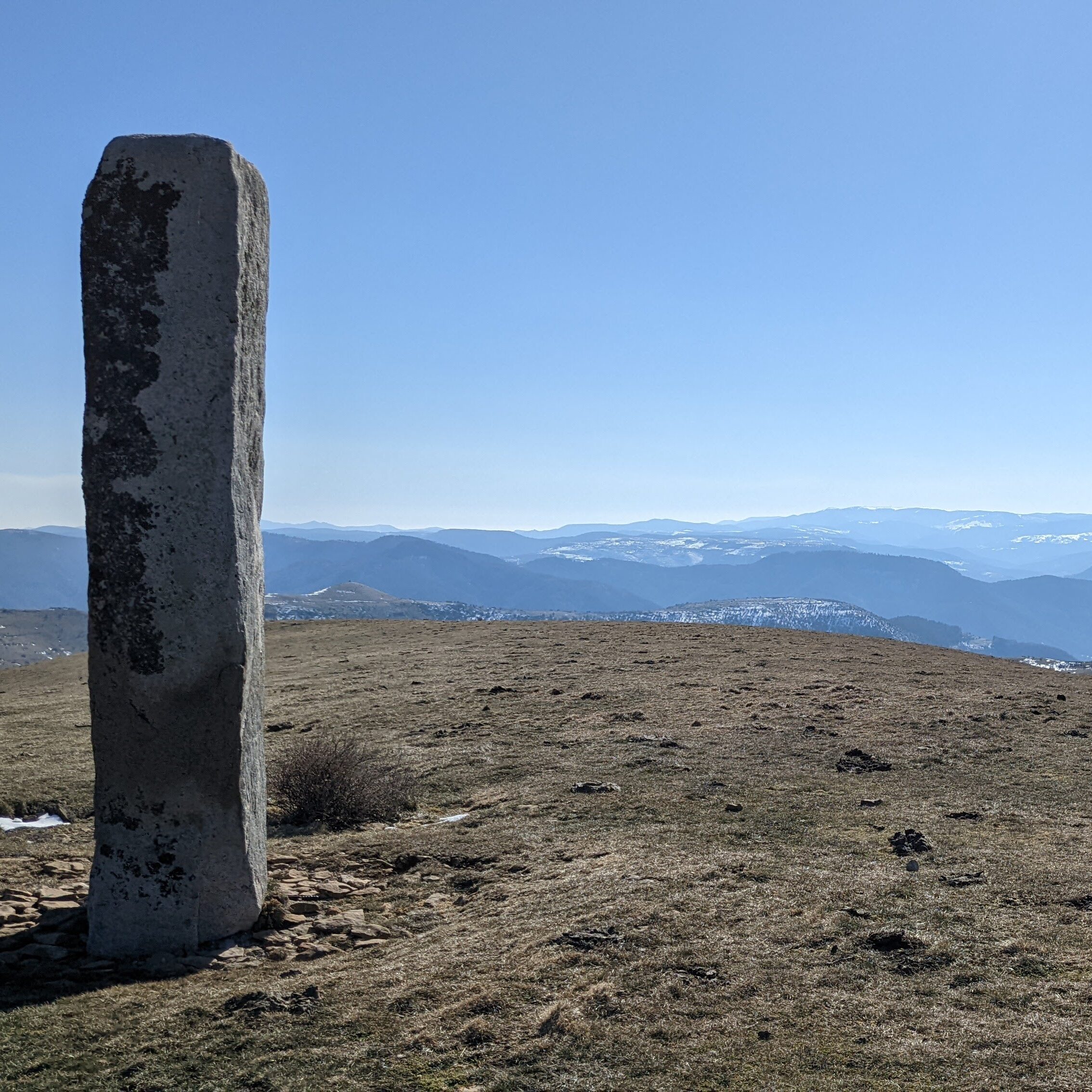 L’histoire ne nous dit pas si les Romains buvaient du thé, mais ce qui est certain, c’est qu’ils se délectaient de nos fromages. Pline le Jeune himself (« lui-même » en pas latin) fait écho dans ses écrits au succès des fromages des Gabales auprès de la bonne société de Rome. Et les Gabales, c’est qui ? Nos ancêtres, pardi ! Un peuple gaulois dont la capitale se situait en lieu et place de l’actuelle Javols. D’ailleurs, c’est au musée de Javols que vous pourrez admirer Sylvain-Sucellus, le beau gosse aux cheveux bouclés, tout de grès rouge vêtu, que vous avez très certainement repéré. 😉 Enfin, sa statue, celle d’un dieu gaulois, qui fut taillée à l’époque romaine – vous suivez ? Parce qu’on n’en a pas fini de voyager dans le temps… C’est en effet à l’époque néolithique, soit grosso modo 3000 ans avant notre ère, que le Petit Poucet est passé vers les Bondons (ça en fait du beau monde dans le coin !)… Comment sinon expliquer la présence de 154 menhirs sur à peine 10 km2, soit la 2ème concentration mégalithique de France après Carnac ? Plus sérieusement, nos aïeuls ont dû redoubler d’ingéniosité et de courage pour tracter, sur plusieurs kilomètres, des blocs de granit de plusieurs tonnes et les ériger là. Sur un sol calcaire. À plus de 1100 m d’altitude. Une véritable prouesse dont les tenants et les aboutissants restent encore enveloppés d’un voile de mystère…