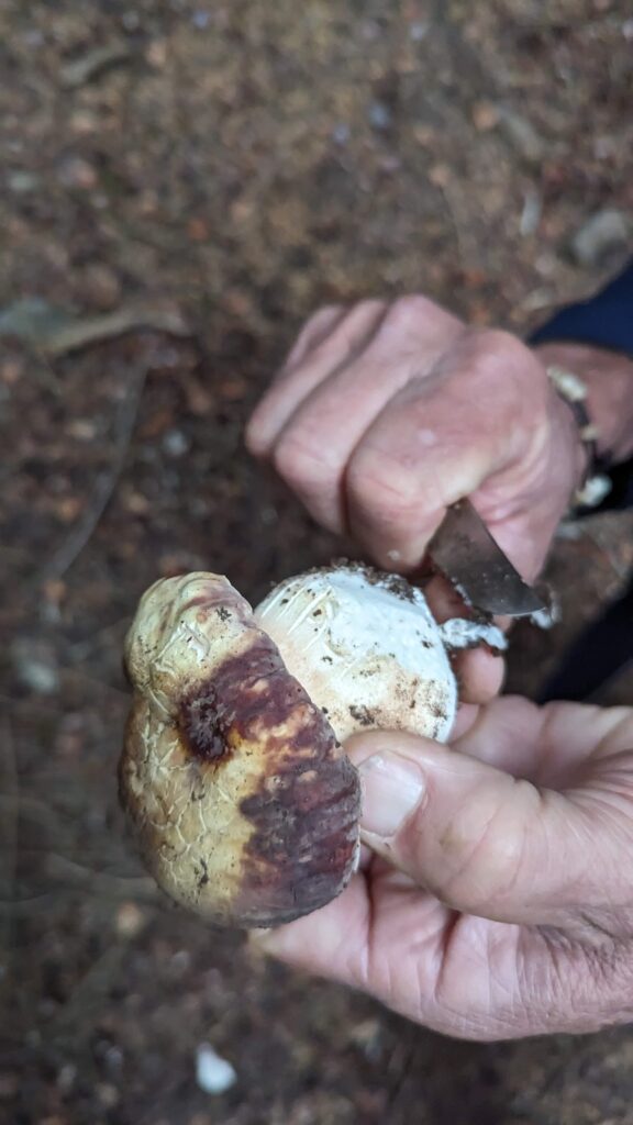Et que serait enfin la gastronomie lozérienne sans sa panoplie de produits locaux, des délicieux fruizélégumes qui s’épanouissent dans nos potagers, aux framboises, mûres, myrtilles et cynorrhodons (gratte-culs pour les intimes !) des bords de sentiers, jusqu’aux champignons de nos forêts ? D’ailleurs, on a représenté les cèpes et autres girolles quelque part en Margeride, mais ne vous y méprenez pas : ils ne sont pas là ! Enfin, pas seulement là ! Les coins à champis, c’est sacré. Top secret ! Ça se mérite et se transmet jalousement (ou pas !) au sein des foyers… Ainsi, si un(e) Lozérien(ne) vous partage sa boletière, vous pouvez être certain(e) qu’il va bientôt demander votre main 🤭 Vous n’aurez pas à chercher bien loin pour le menu de noces : un plateau de fromages aux mille saveurs et 5 AOP (vous pouvez les réciter ? Non ? Allez, on révise ! Côté vache, on retrouve les Bleu d’Auvergne, Bleu des Causses et Laguiole. Côté brebis, le célèbre Roquefort, certes transformé en Aveyron, mais dont le lait peut tout aussi bien provenir de Lozère. Et enfin, côté chèvre, le Pélardon bien rond, l’or blanc des Cévennes !) et une petite infusion de thé d’Aubrac (ou Calament à grandes fleurs, la fameuse plante violette en haut à gauche) pour faire glisser le tout. Re-miam !