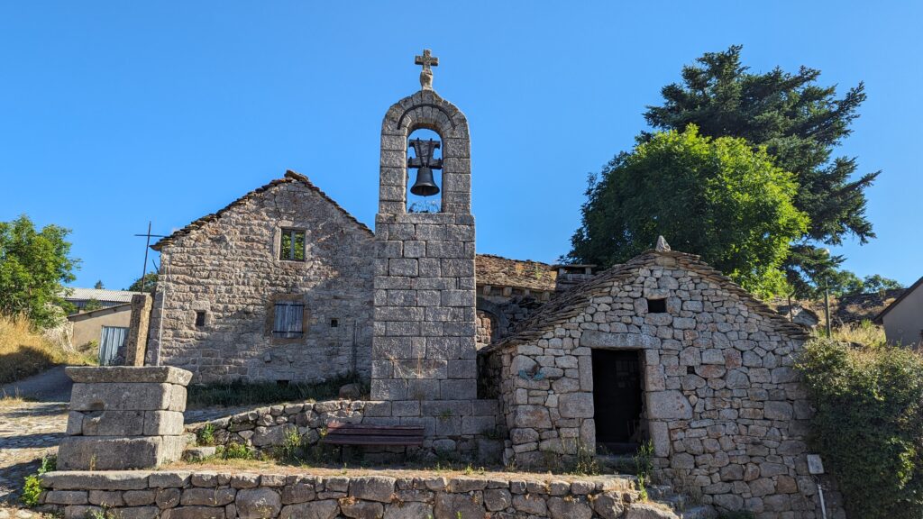 Plus près de notre ère, on a déjà évoqué les burons aux épais murs de pierre. À l’apogée de leur utilisation, il y en aurait eu environ 300, posés sur leur plateau – pas mal ! Mais ce n’est encore qu’un petit bout de l’empreinte laissée par des générations de bâtisseurs, qui ont travaillé ici le granit, là le calcaire, là encore le schiste. Voyez ce muret en cours de confection dans les Cévennes : c’est l’école de la pierre sèche qui s’entraîne ! Un savoir-faire qui a depuis bien longtemps dépassé les frontières lozériennes et françaises. Plus à l’ouest, v’là le calcaire, avec Sainte-Énimie en invité de marque : un de nos plus beaux villages de France, bercé par le Tarn, surplombé par l’ermitage de la fameuse princesse mérovingienne (Énimie, au cas où vous n’auriez pas la réf’). On aperçoit aussi une cazelle, construite par quelque berger pour veiller sur son troupeau. Elle jouxte une doline, une petite dépression du Causse où s’accumulent les terres les plus fertiles. Parfois ces dolines ont été aménagées en lavognes, de petites réserves d’eau de pluie. Car à l’inverse du reste de la Lozère, l’eau est rare sur les Causses (ou du moins, elle s’infiltre très profondément), alors il a fallu ruser… Travailler main dans la main avec la nature, pour façonner ses paysages, les habiter. Un héritage précieux, vivant – et reconnu au titre du Patrimoine Mondial de l’Humanité.