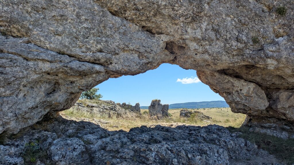 Et puis, il y a les lieux où la nature s’est prise pour un artiste. Elle a pris son pinceau, et dessiné les contours de paysages fantastiques. Voyons du côté du Causse Méjean : le coin ressemblait déjà à la lointaine Mongolie, mais ça ne lui a pas suffi. Il a fallu qu’il s’arroge le Chaos de Nîmes-le-Vieux. Un décor lunaire, des blocs de calcaire qui tiennent on-ne-sait-comment, des sculptures minérales qui viennent titiller l’imagination de quiconque les contemple. Plus au nord, dans le Parc naturel régional de l’Aubrac, on retrouve la Cascade du Déroc et sa grotte tapissée d’orgues basaltiques. Une véritable cassure du plateau, un tableau aussi beau au cœur de l’été que dans le givre de l’hiver. Retour au sud pour plus de cavités aux proportions XXL : l’Aven Armand dans lequel on pourrait caser la Cathédrale Notre-Dame-de-Paris et la Grotte de Dargilan qui arbore la plus grande draperie au monde (rien que ça). Et que dire des Bondons, duo de mamelons que la légende attribue à un certain Gargantua, dont les bottes boueuses auraient « malencontreusement » engendré ces collines de marne ? Une vraie carte postale ! (et c’est encore sans compter sa ribambelle de menhirs… mais ça, on en parlera après !)