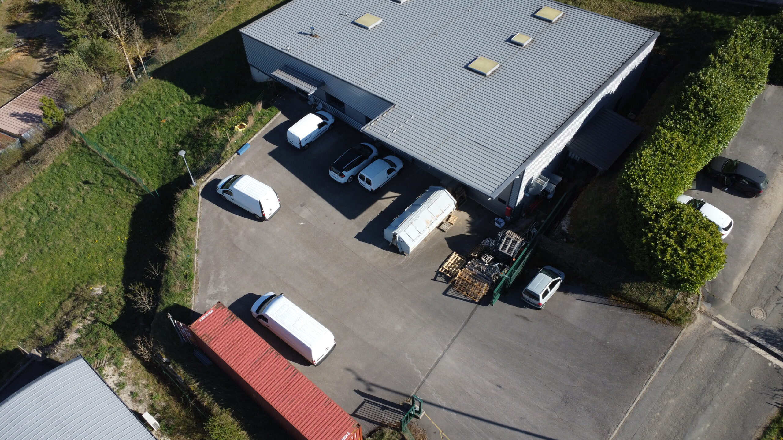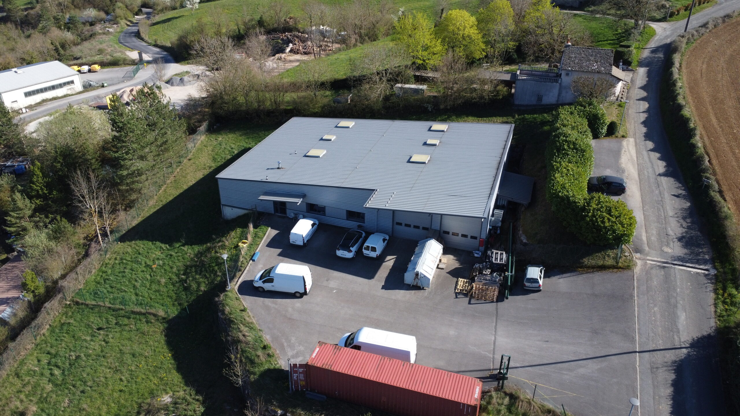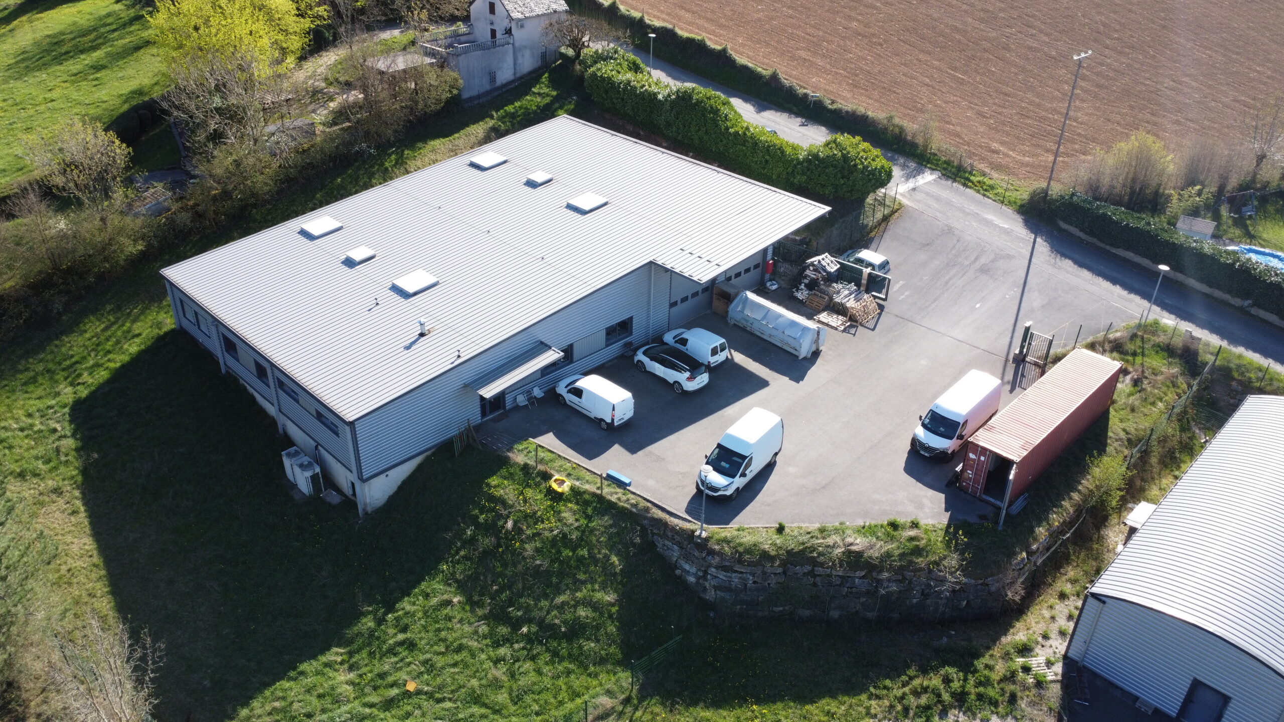 - Accès : Deux portes sectionnelles de 3.8 m x 4.5 m avec SAS interne - 5.5 m sous appentis exterieur